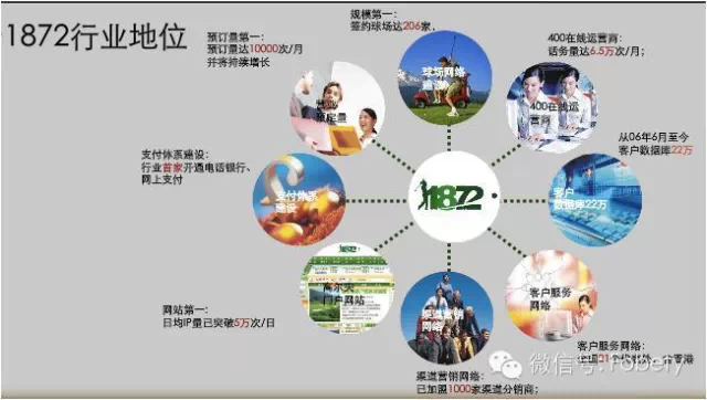 1872高爾夫是目前中國高爾夫行業(yè)最大的運營服務商、中國銀行業(yè)白金卡最大的專屬服務外包商,致力于打造全球高端客戶的在線語音服務平臺和全國最先進的高爾夫會員俱樂部,致力于引導會員追求健康綠色生活新方式,為會員提供以球場預訂、賽事交流、用品配送、行程定制、資迅傳播等5S為主的高球一卡通服務。2009年11月,鷹皇憑借著驕人的業(yè)績、良好的信譽,被評為國家信息化試點工程之一,獲此殊榮的僅湖南3家、全國106家。同年,鷹皇聯(lián)姻工銀亞洲,推出全新高爾夫球主題信用卡、香港市場首張雙幣信用卡──1872高球卡。此外,1872高爾夫與國內知名的各大專業(yè)媒體建立了廣泛的合作平臺,積極開展全方位的深度合作,不僅為高爾夫愛好者提供了全面及時而準確的球具知識和信息,也為高爾夫在網絡推廣方面提供了一種新的嘗試。